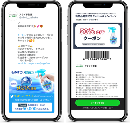その場ですぐに使える特別クーポン50,000名に当たるチャンス!新商品発売記念Twitterキャンペーン