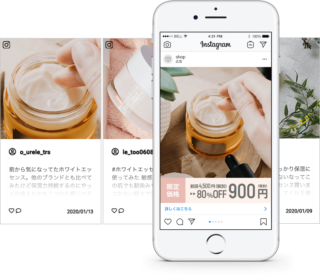 WEB広告やSNSアカウントのクリエイティブ素材に活用できます。UGCは低コスト・短期間で集められる為、動画広告の素材としての活用事例・成果実績が多数あります。