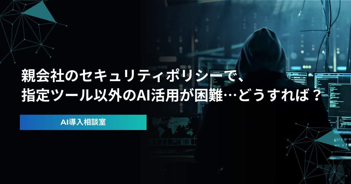 【AI導入相談室】親会社のセキュリティポリシーに従う必要があり、指定ツール以外のAI活用が困難…どうすれば?